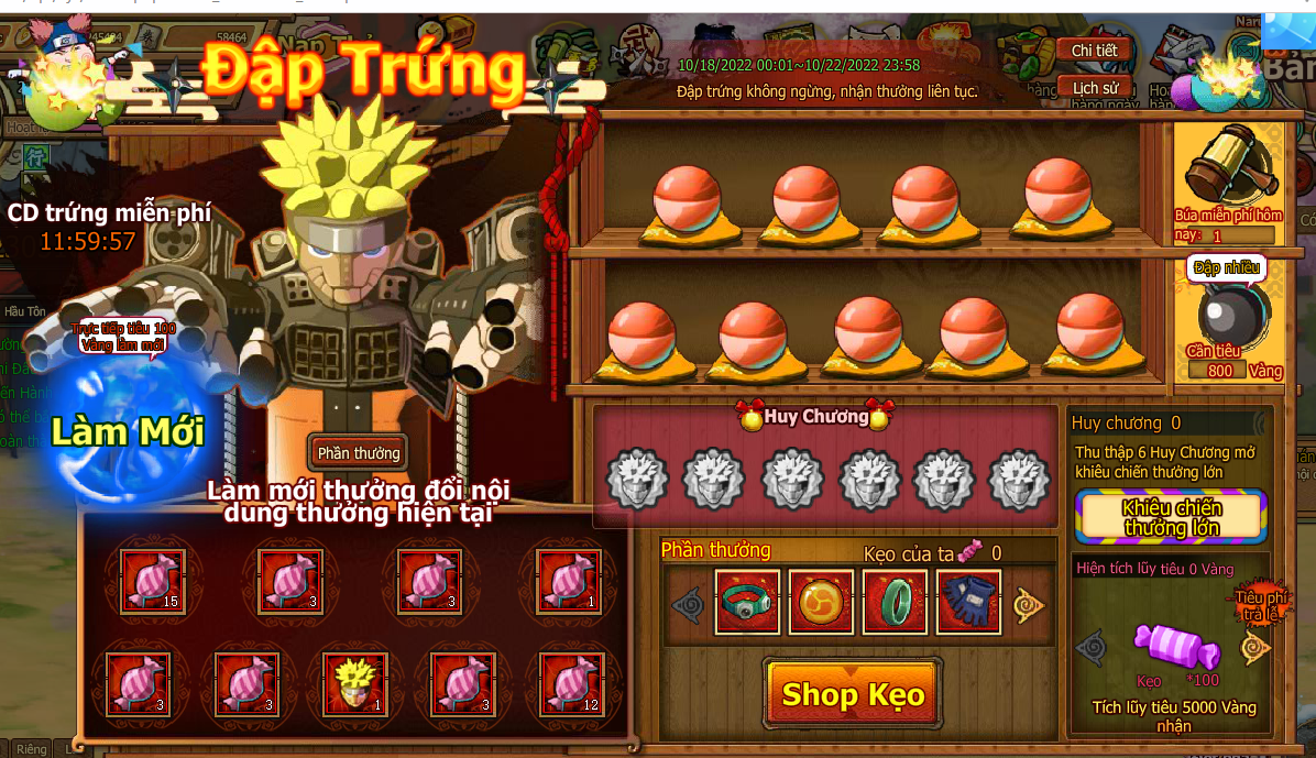 7. Trong quá trinh đập trứng nhận Huy Chương , tập hợp đủ 6 Huy Chương mở kiêu chiến thưởng lớn , ở kiêu chiến thưởng lớn nhận lượng lớn kẹo