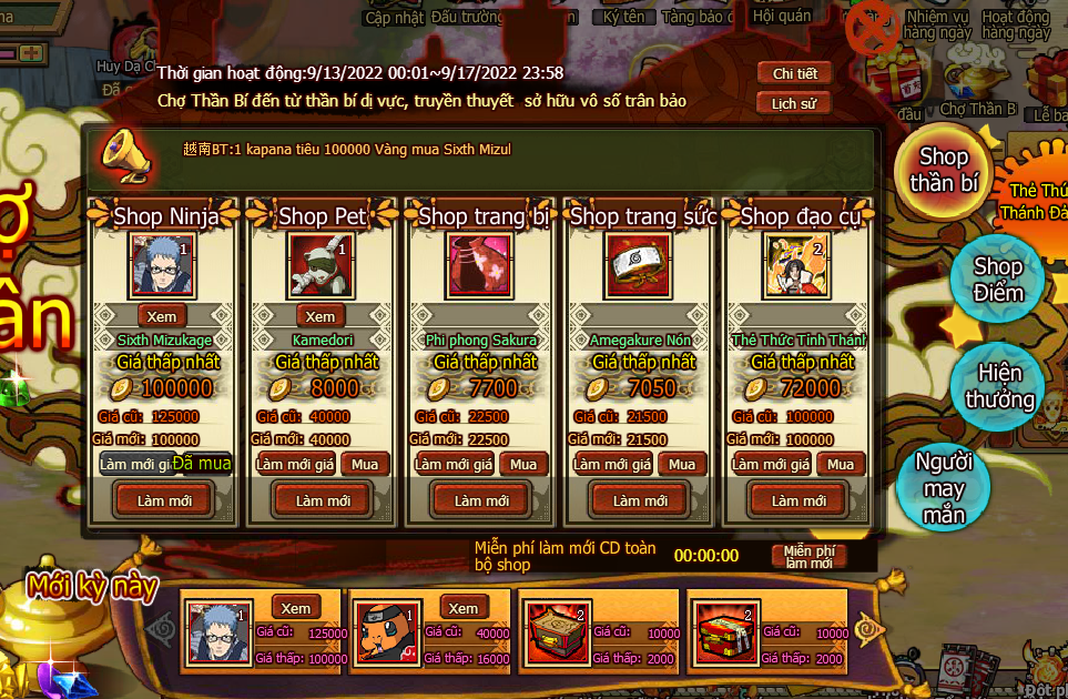 1. Trong thời gian event , người chơi ở chợ thần bí mua các loại vật phẩm