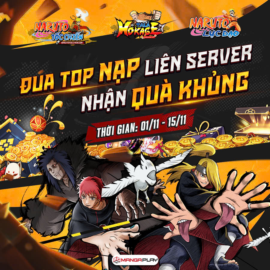 – Toàn cõi Ninja lại một lần nữa sục sôi! Sự kiện Nạp Liên Server quay trở lại, mở ra cuộc đua khốc liệt để tìm ra những Nhẫn Giả mạnh mẽ và chịu chi nhất.