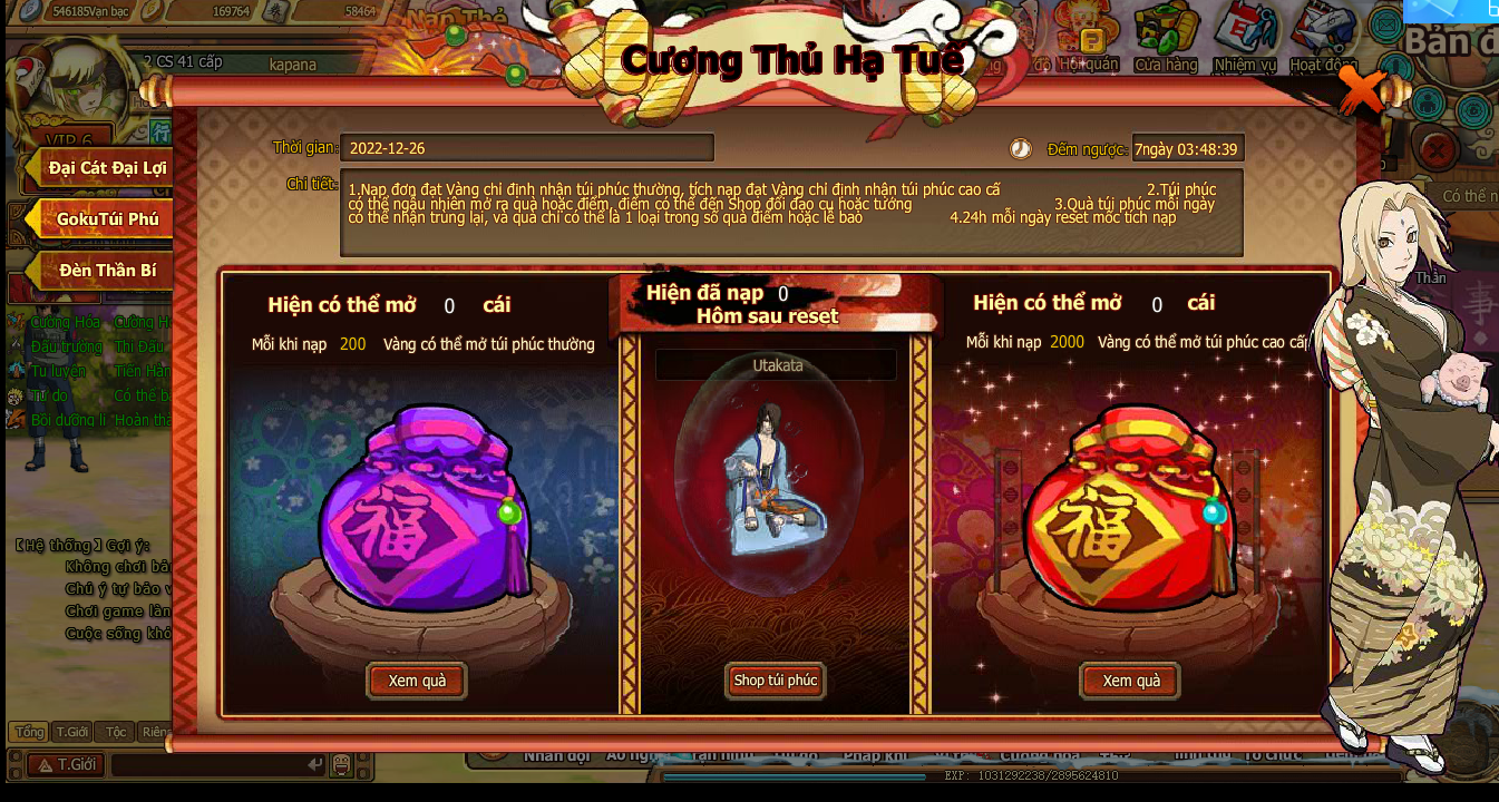 1. Nạp đơn đạt Vàng chỉ định nhận túi phúc thường, tích nạp Vàng chỉ định nhận túi phúc cao cấp.