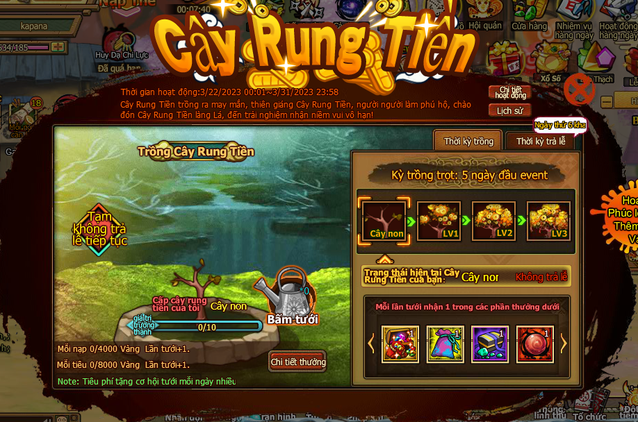 Trong thời gian event nạp 1 lần đạt mức chỉ định , nhận trả lễ vàng .