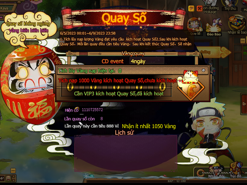 1. Tích lũy nạp lượng vàng đạt yêu cầu kích hoạt Quay Số.